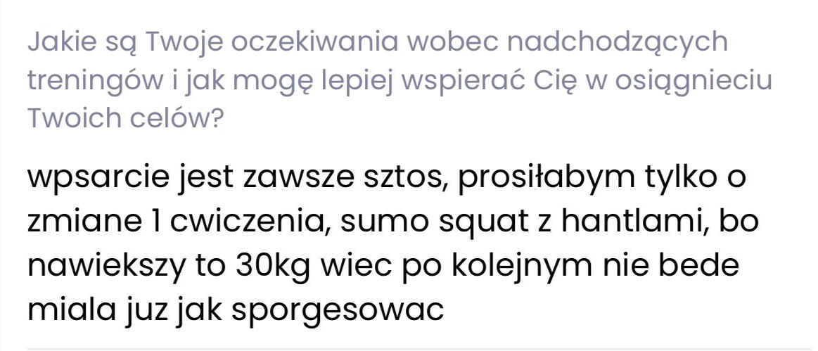 • Moja osobowość i sposób komunikacji• Moje podejście do treningu i diety• To jaki jestem wymagający• Realne wsparcie jakie oferuje
