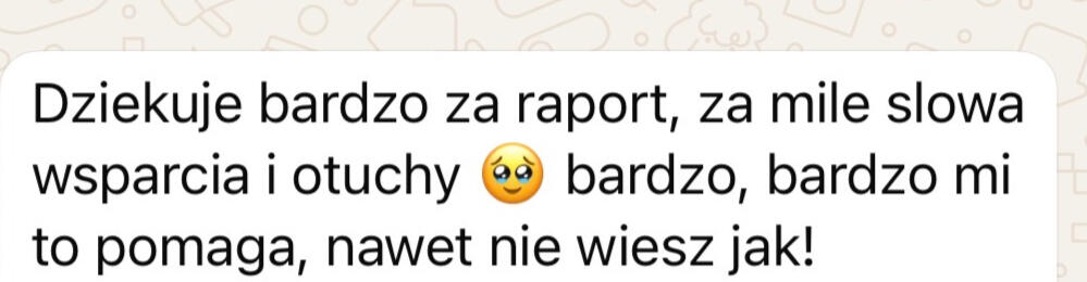 Każdy raport analizuję indywidualnie i nagrywam dla Ciebie film z omówieniem postępów, błędów i dalszych kroków. Dokładnie wiesz, co robić.