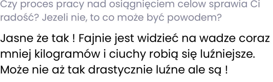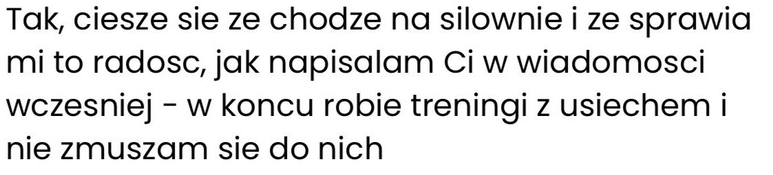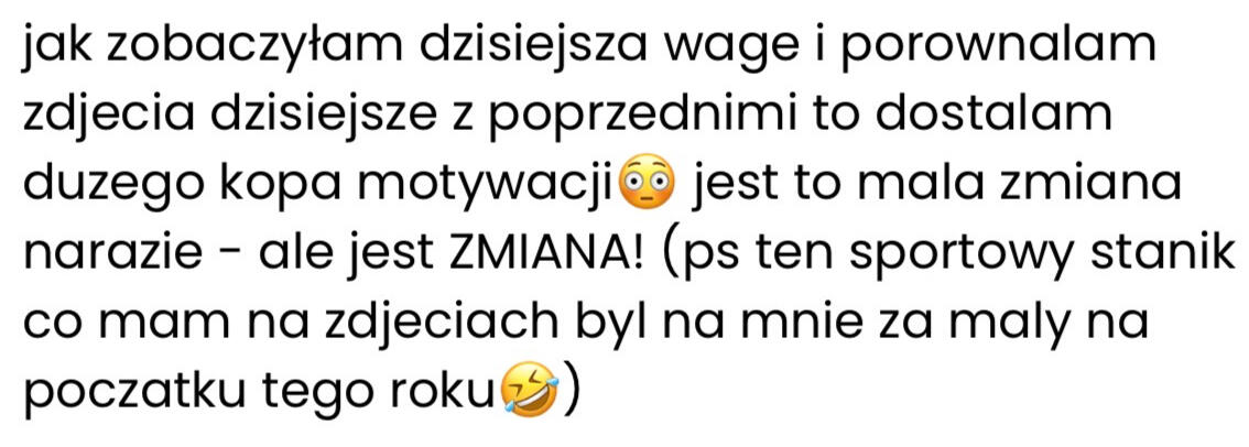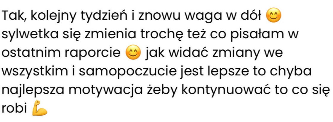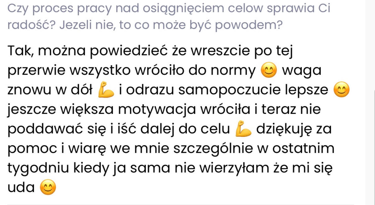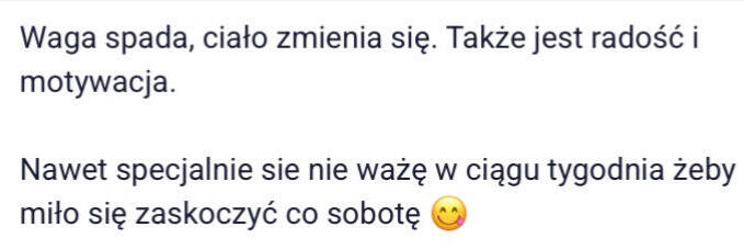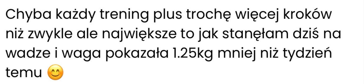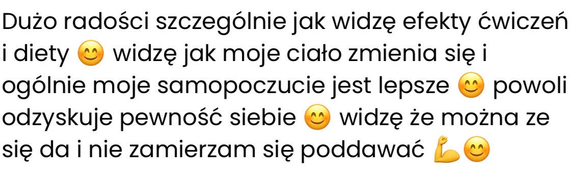 Tu nie chodzi tylko o wygląd, a o to, co czujesz jak patrzysz w lustro. Że Jesteś dumna z tego co osiągnąłaś. Że masz energię, której dawno nie czułaś. I że w końcu wiesz co zrobić żeby tego nie zepsuć i nie zaczynać wszystkiego od nowa
